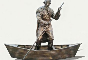 《漁者泛舟》銅雕人物景觀雕塑