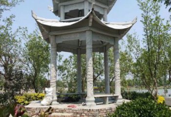 經典精美的花崗巖石雕涼亭