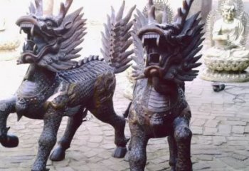 大型仿真麒麟雕塑,增添寺廟園林景觀紅晚霞之美