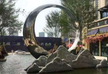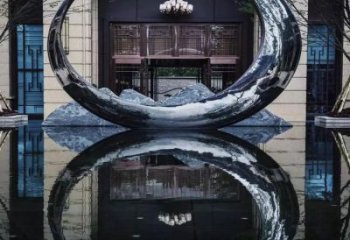不銹鋼水景圓環雕塑——售樓部精致創意鏡面裝飾