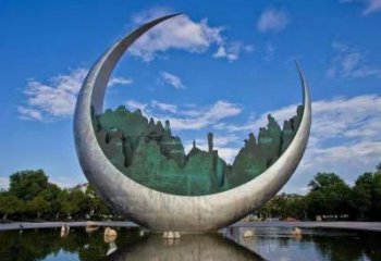大型不銹鋼戶外月牙水景擺件