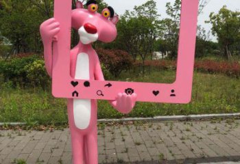 海邊粉紅樹脂豹雕塑捕捉海洋的靈魂