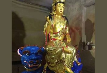 玻璃鋼文殊菩薩雕塑貼金寺廟裝點