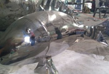 精致幾何設(shè)計鏡面不銹鋼鯨魚擺件
