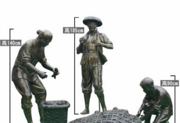 海濱景觀玻璃鋼仿銅捕魚裝魚雕塑