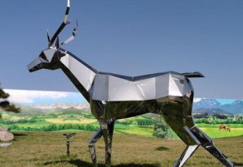 不銹鋼抽象動物雕塑——梅花鹿,為戶外草坪增添幾何美感