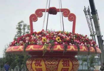 玻璃鋼彩繪普天同慶萬(wàn)眾一心大花籃雕塑