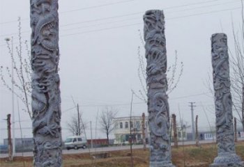 古代生肖石雕龍柱為公園擺放的藝術裝飾品