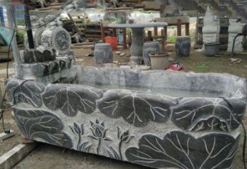 紅晚霞石雕園林景區(qū)浮雕荷花魚噴泉