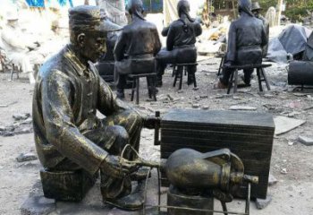玻璃鋼仿銅民俗爆米花人物小品擺放步行街