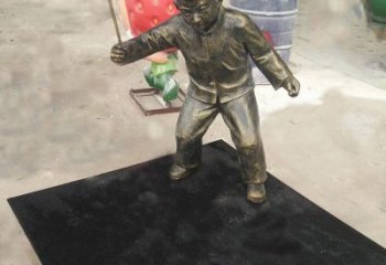 步行街小男孩銅雕景觀打陀螺裝飾